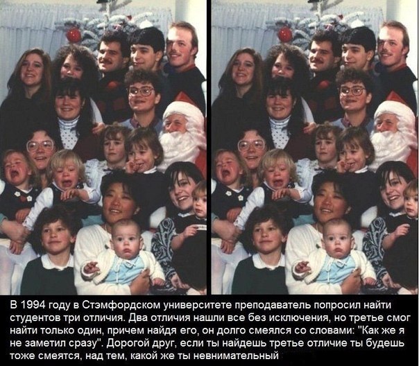 Собственно, описание имеется на самой картинке. Нужно найти три отличия между правой и левой картинками.